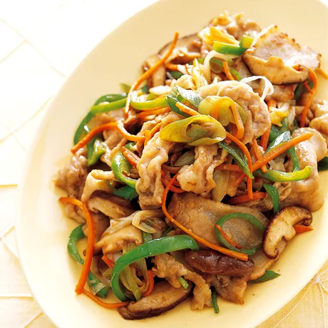 豚とせん切り野菜の黒酢炒め