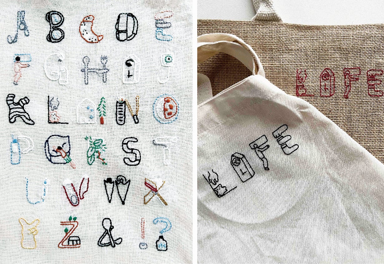 個人的には千葉美波子(クロヤギシロヤギ)氏がデザインしたという刺繍図案が面白そうだなあと思ってます。無印良品の商品をモチーフにしたアルファベット。時間があったら作ってみようかしら。