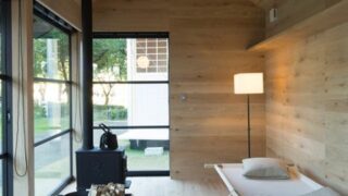 現在も発売中の肘掛けが木製のソファ。2021年グッドデザイン賞受賞。